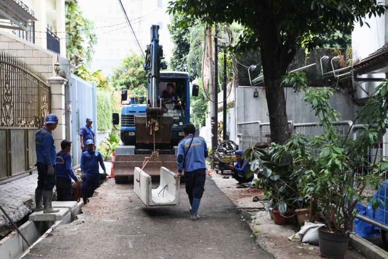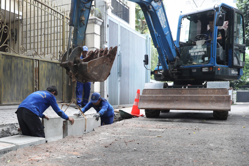 Sudin SDA Jaksel Perbaiki Saluran Jalan Tulodong Bawah VII