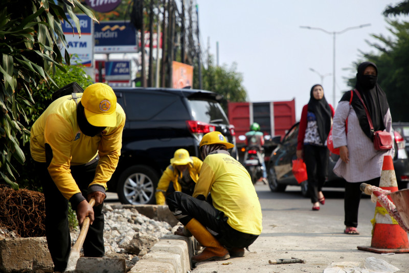 Pembangunan Trotoar di Jalan Raya Bogor Capai 80 Persen
