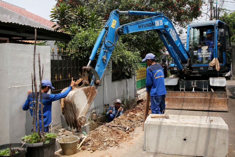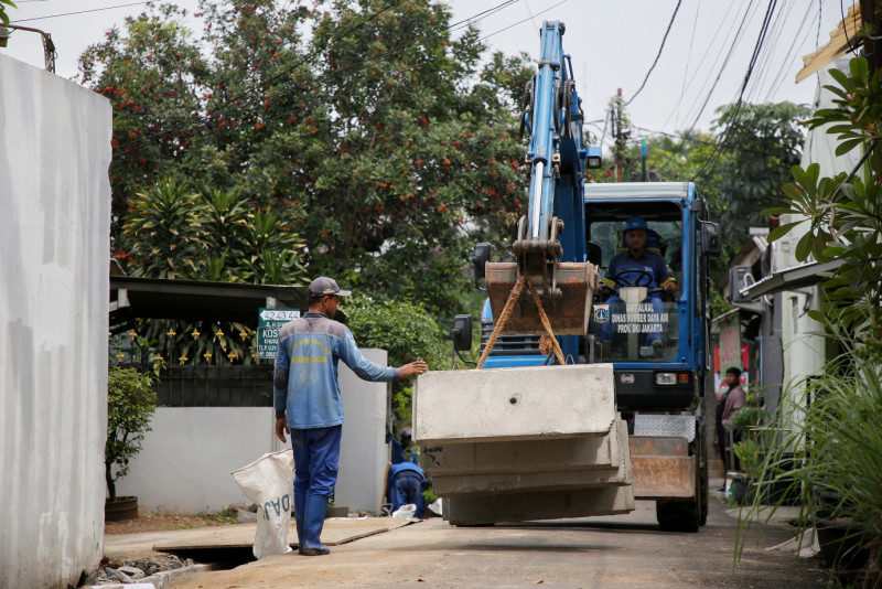 Suku Dinas Sumber Daya Air Jakarta Selatan lakukan perbaikan saluran di Jalan H Sinen C1, Kelurahan Ragunan, Kecamatan Pasar Minggu, Jakarta Selatan, Jumat (8/12). Perbaikan saluran ini merupakan tindak lanjut usulan masyarakat melalui Musrenbang tahun 2023. (Foto: Andri Widiyanto/beritajakarta.id)