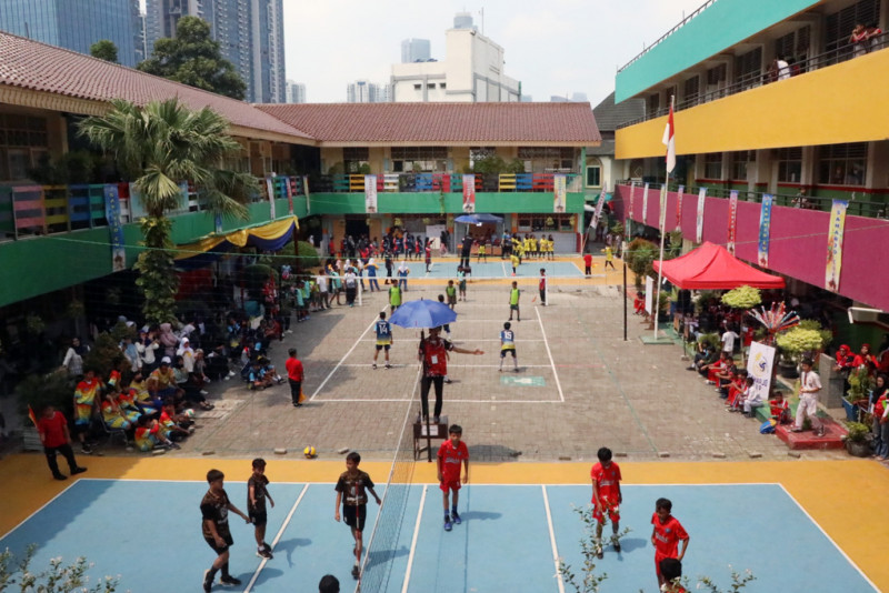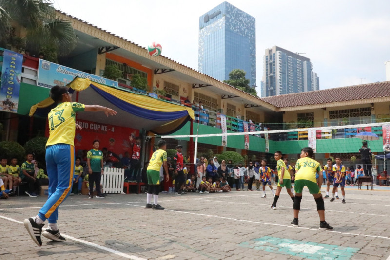 Sebanyak 684 atlet pelajar tingkat Sekolah Dasar (SD) mengikuti perlombaan bola voli mini Saharjo Cup 4 di SDN Menteng Atas 01 dan 02, Menteng Atas, Setiabudi, Jakarta Selatan, Senin (11/12). Saharjo Cup 4 menjadi ajang untuk meningkatkan prestasi olahraga, khususnya cabang bola voli. (Foto: Mochamad Tresna Suheryanto/beritajakarta.id)