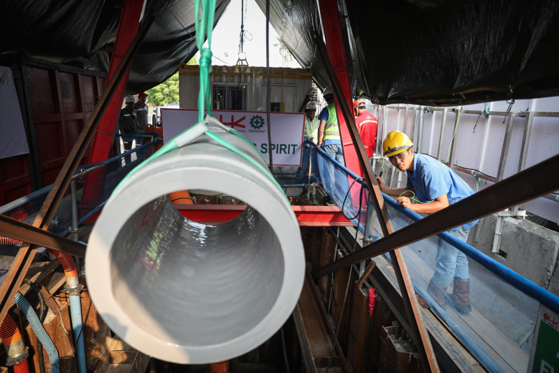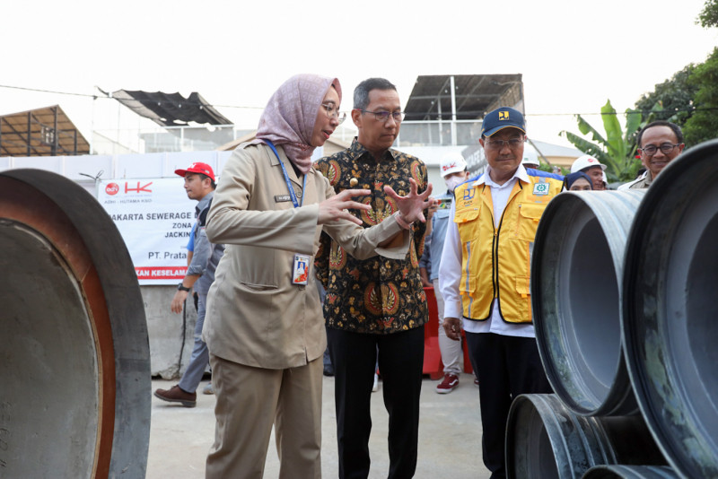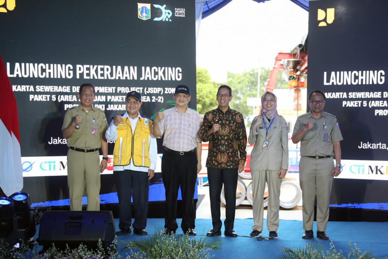 Penjabat (Pj) Gubernur DKI Jakarta, Heru Budi Hartono, meluncurkan pekerjaan konstruksi jaringan pipa air limbah Jakarta Sewerage Development Project (JSDP) di Jalan Pluit Indah, Kelurahan Pluit, Penjaringan, Jakarta Utara, Selasa (12/12). Proyek JSDP berperan sebagai Sistem Pengelolaan Air Limbah Domestik Terpusat (SPALD-T) di DKI Jakarta untuk mengalirkan air limbah domestik melalui sistem perpipaan menuju ke Sub-sistem Pengolahan Terpusat. (Foto: Nugroho Sejati/beritajakarta.id)