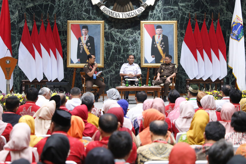 Penjabat (Pj) Gubernur DKI Jakarta, Heru Budi Hartono, membuka acara Penyuluhan Hukum untuk memperingati Hari Antikorupsi Sedunia (Hakordia) Tahun 2023 di Balai Agung DKI Jakarta, Gambir, Jakarta Pusat, Rabu (13/12). Acara dengan tema \"Maju Membangun Negeri Tanpa Korupsi\" ini turut dihadiri sejumlah siswa dan kepala sekolah perwakilan sekolah-sekolah di Jakarta. Heru Budi Hartono mengapresiasi upaya pencegahan korupsi di Jakarta, termasuk lingkungan pendidikan. (Foto: Nugroho Sejati/beritajakarta.id)