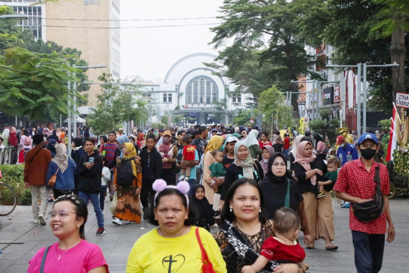 Libur Natal dan Tahun Baru 2024 (Nataru) dimanfaatkan warga untuk berwisata kesejumlah lokasi yang di Jakarta salah satunya di kawasan Kota Tua di Kelurahan Pinangsia, Tamansari, Jakarta Barat, Senin (25/12). Tercatat sampai pukul 15.00, sebanyak 10.000 pengunjung memadati kawasan ini didominasi dari warga DKI Jakarta dan luar DKI Jakarta. (Foto: Mochamad Tresna Suheryanto/beritajakarta.id)