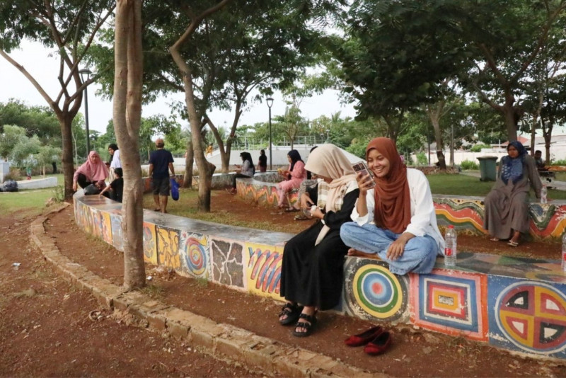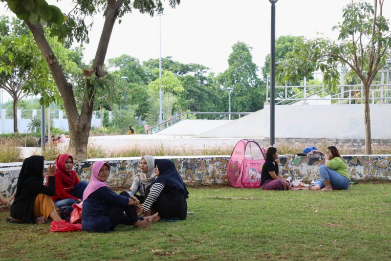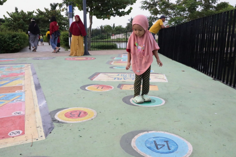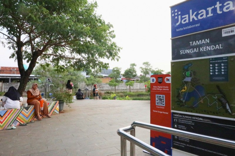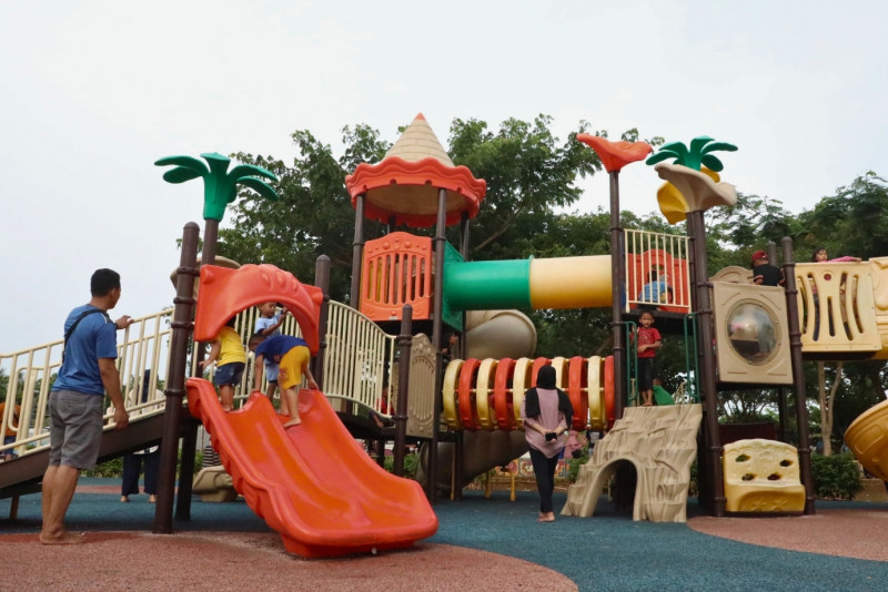 Ratusan warga memanfaatkan waktu libur cuti bersama Natal 2023 dengan bermain di Taman Sungai Kendal, Jalan Sungai Kendal, Rorotan, Cilincing, Jakarta Utara, Selasa (26/12). Hingga pukul 16.00 tercatat sudah 500 pengunjung mendatangi Taman Sungai Kendal. (Foto: Mochamad Tresna Suheryanto/beritajakarta.id)