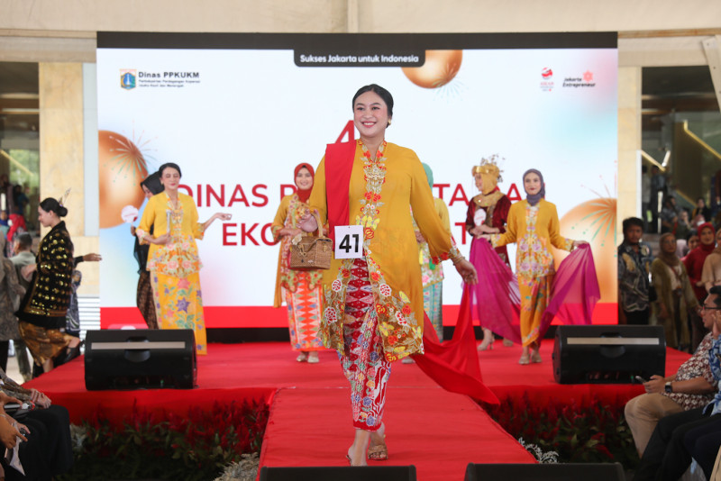 Dinas Perindustrian, Perdagangan, Koperasi, Usaha Kecil dan Menengah (PPKUKM) DKI Jakarta menggelar lomba peragaan busana kebaya nasional di Halaman Grha Ali Sadikin, Balai Kota DKI Jakarta, Jalan Medan Merdeka Selatan, Gambir, Jakarta Pusat, Kamis (28/12). Lomba peragaan busana yang digelar dalam rangka Hari Ibu ke-95 tersebut diikuti oleh 50 tim peserta dari SKPD dan BUMD di lingkungan Pemprov DKI Jakarta. (Foto: Nugroho Sejati/beritajakarta.id)