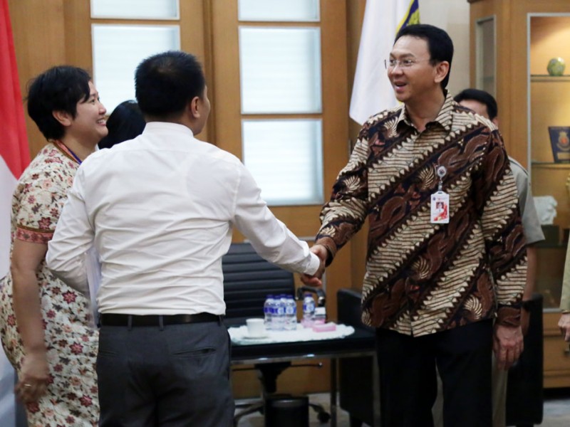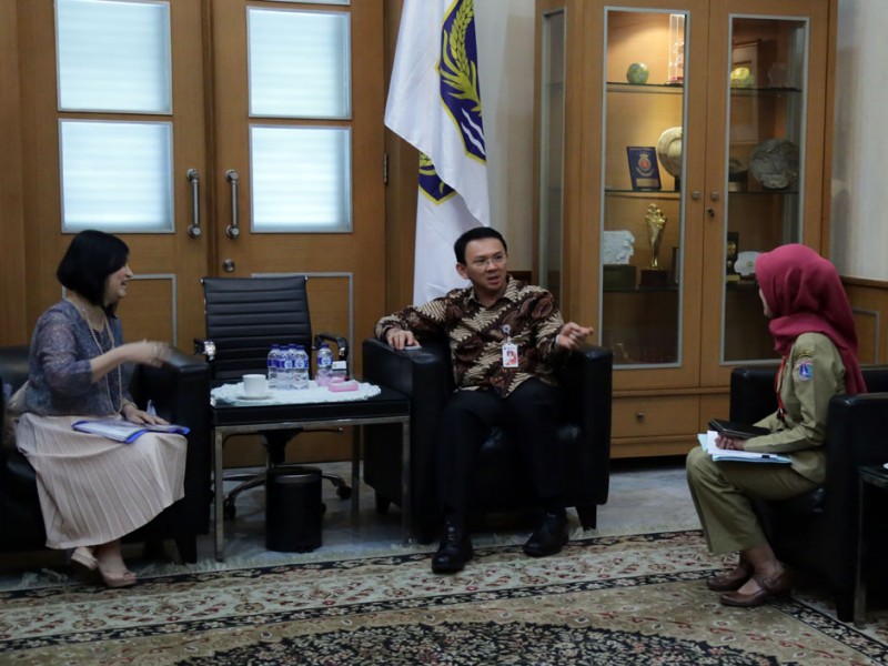 Gubernur DKI Jakarta, Basuki Tjahaja Purnama menerima jajaran direksi PT Merck Tbk Indonesia, di Balai Kota DKI Jakarta, Rabu (26/8/2015). Dalam kesempatan tersebut jajaran direksi PT Merck Tbk Indonesia menyampaikan perihal rencana penyelenggaraan program Corporate Social Responsibility (CSR) dengan tema Jakarta Diabetes Day dengan memberikan pelayanan kesehatan gratis kepada seluruh penghuni Rusun. (Foto: Yopie/beritajakarta.com)