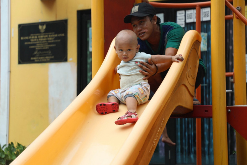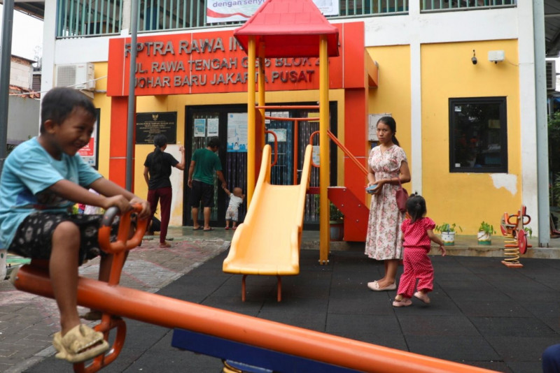 Melihat keseruan anak-anak bermain di Ruang Publik Terpadu Ramah Anak (RPTRA) Rawa Ceria di Jalan Kampung Rawa Sawah No.07, Johar Baru, Jakarta Pusat, Rabu (3/1). RPTRA yang memiliki luas 980 meter persegi ini menjadi pilihan anak-anak untuk bermain serta menikmati fasilitas yang ada di RPTRA mulai dari permainan anak hingga perpustakaan.