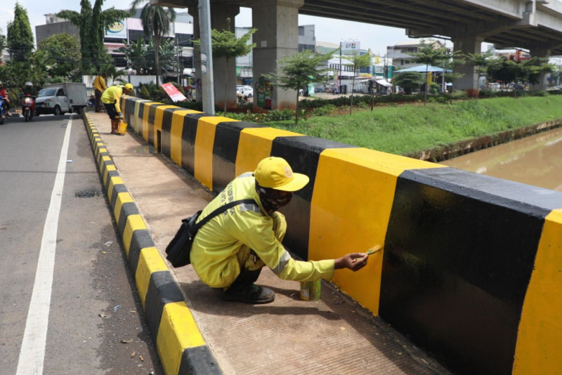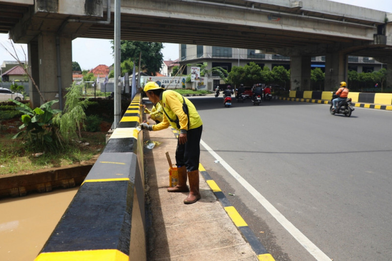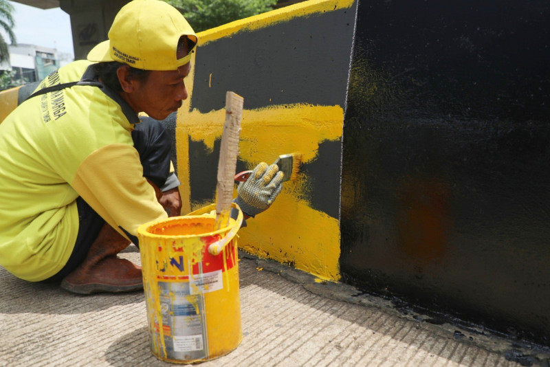 Enam Petugas Bina Marga Cat Jembatan di Kalimalang