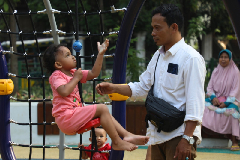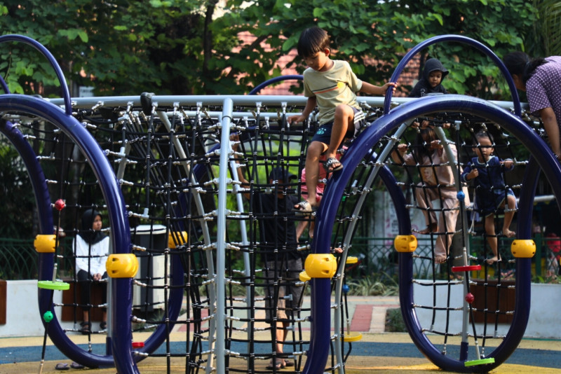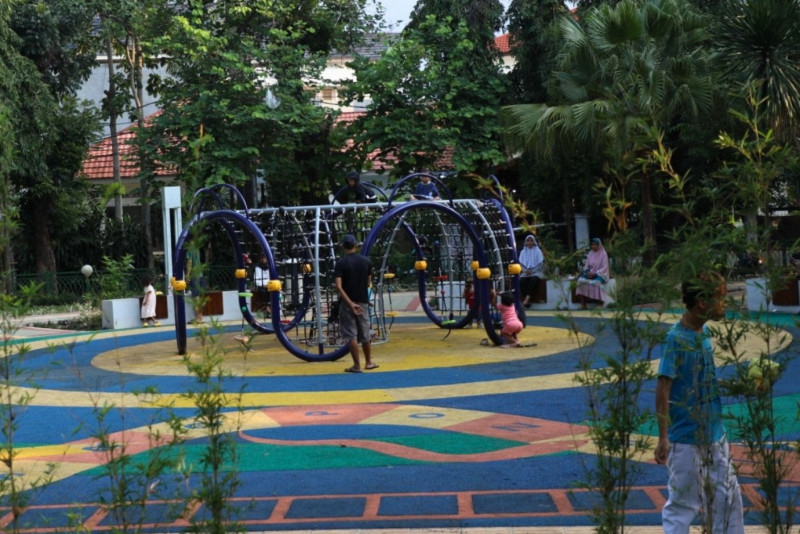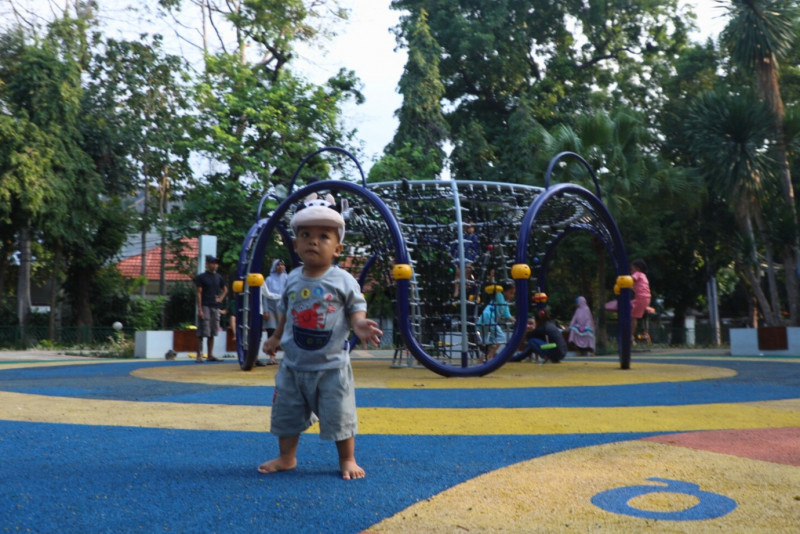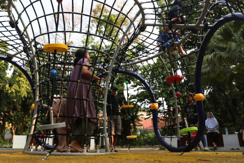 Melihat keseruan warga bermain Ruang Terbuka Hijau (RTH) Taman Sukabumi di Jalan Sukabumi, Menteng, Jakarta Pusat, Jumat (5/1). Taman yang dilengkapi berbagai fasilitas ini menjadi salah satu tempat favorit warga untuk bermain bersama keluarga.