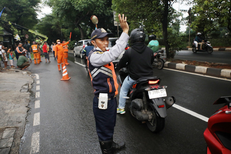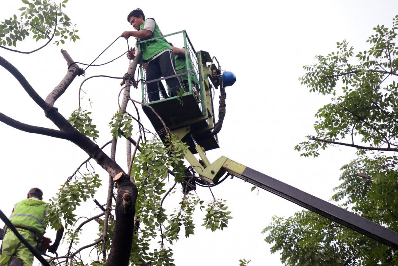 Evakuasi pohon jenis kedondong lanang berdiameter 60 sentimeter dan tinggi 10 meter ini melibatkan 10 petugas yang dibekali sejumlah peralatan. (Foto: Mochamad Tresna Suheryanto/beritajakarta.id)