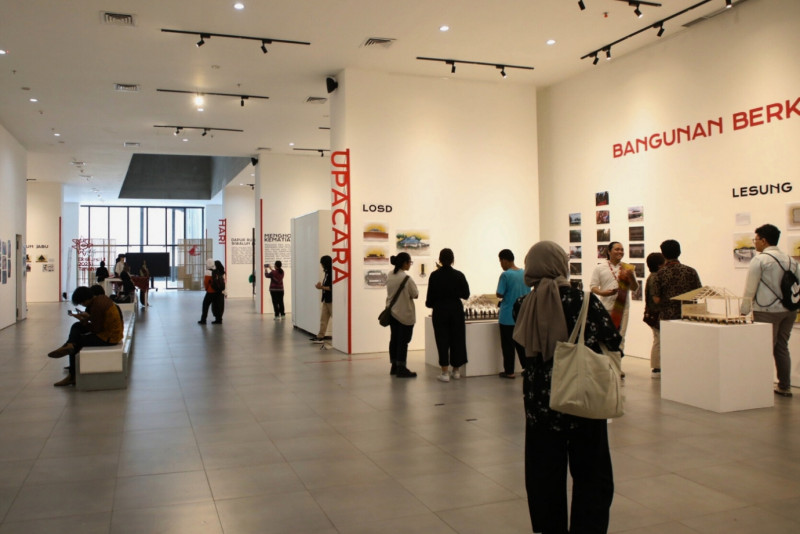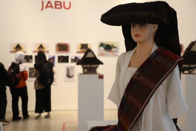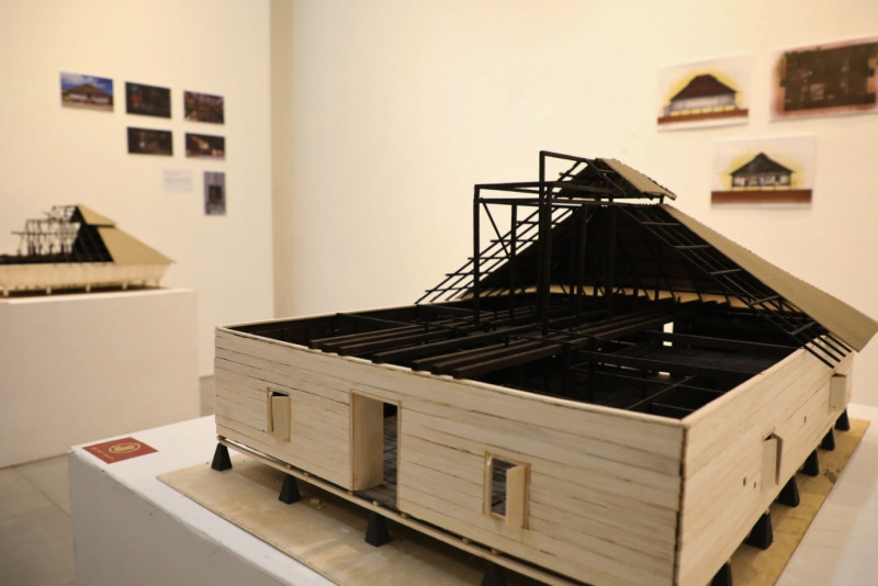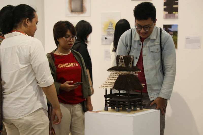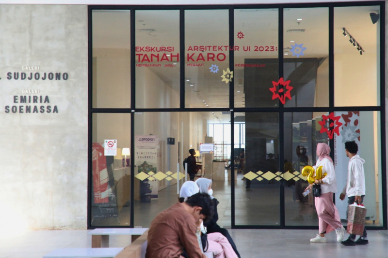 Melihat pameran Ekskursi UI 2023: Tanah Karo di Galeria Emiria Soenassa, Taman Ismail Marzuki (TIM), Jalan Cikini Raya, Menteng Jakarta Pusat, Selasa (9/1). Pameran ini menampilkan hasil penelusuran dan dokumentasi Ekskursi Arsitektur Universitas Indonesia (UI) tentang arsitektur tradisional Tanah Karo.