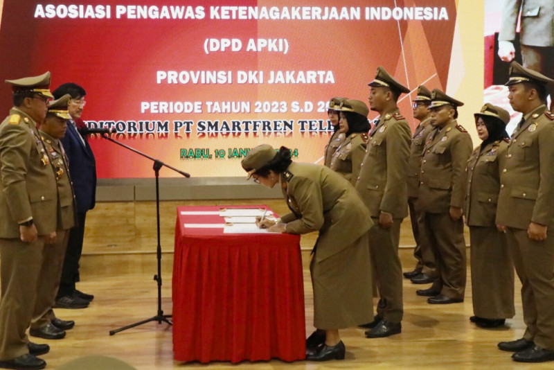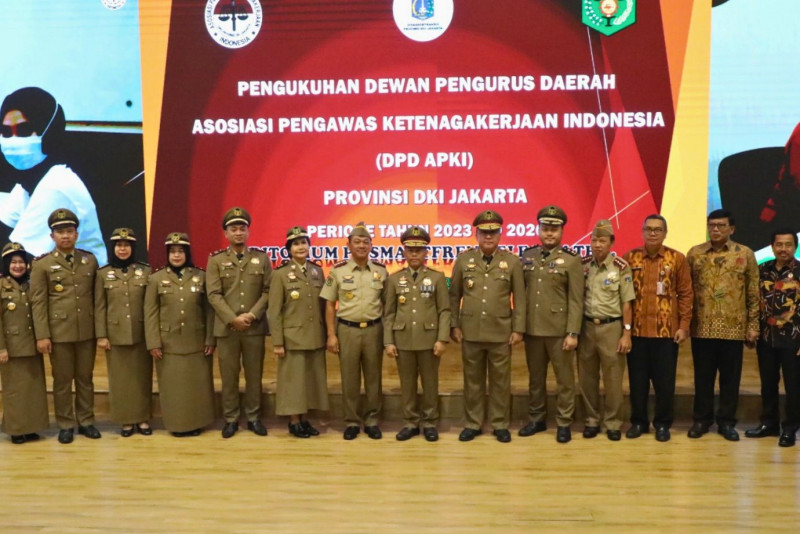 Kepala Dinas Tenaga Kerja, Transmigrasi dan Energi (Nakertransgi) DKI Jakarta, Hari Nugroho menghadiri pengukuhan Dewan Pengurus Daerah (DPD) Asosiasi Pengawas Ketenagakerjaan Indonesia (APKI) DKI Jakarta periode tahun 2023-2026 di Auditorium Smartfren, Jalan H Agus Salim, Kebon Sirih, Menteng, Jakarta Pusat, Rabu (10/1).