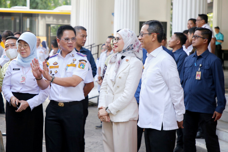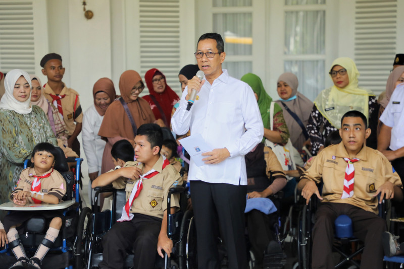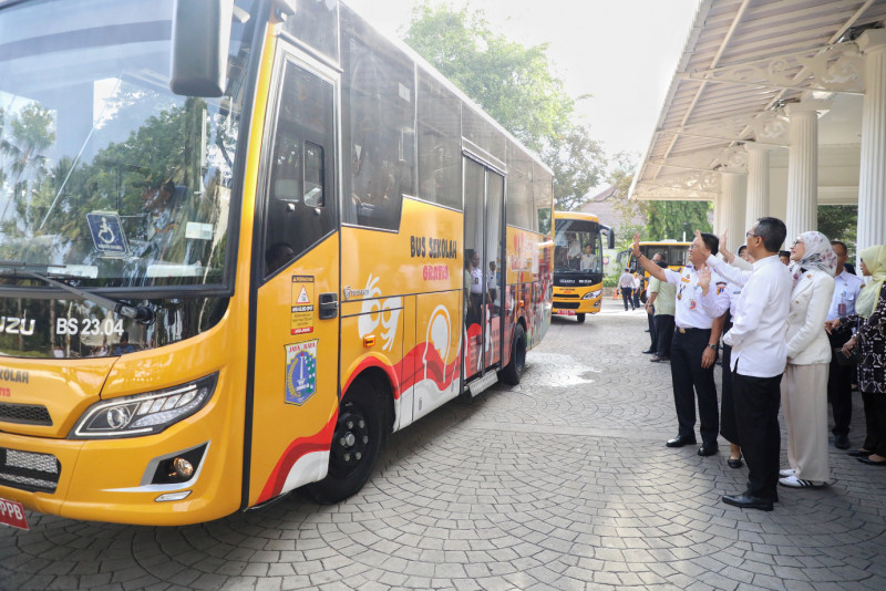Penjabat (Pj) Gubernur DKI Jakarta, Heru Budi Hartono meluncurkan operasional lima bus sekolah berkebutuhan khusus di pendopo Balaikota, Jalan Medan Merdeka Selatan, Gambir, Jakarta Pusat, Rabu (16/1). Kelima armada bus sekolah kebutuhan khusus tersebut akan beroperasi dengan rute Rorotan - Marunda (SLB Negeri 8), Plumpang - Sunter Kemayoran (SLB Negeri 9), serta Tiga rute lainnya berangkat dari Kalideres Jakarta Barat, Muara Baru Jakarta Utara dan Lubang Buaya Jakarta Timur dengan tujuan akhir menuju sekolah YPAC Kebayoran Baru.