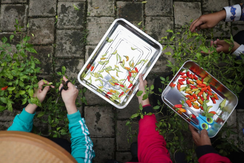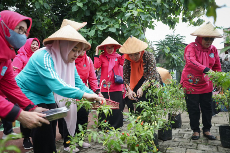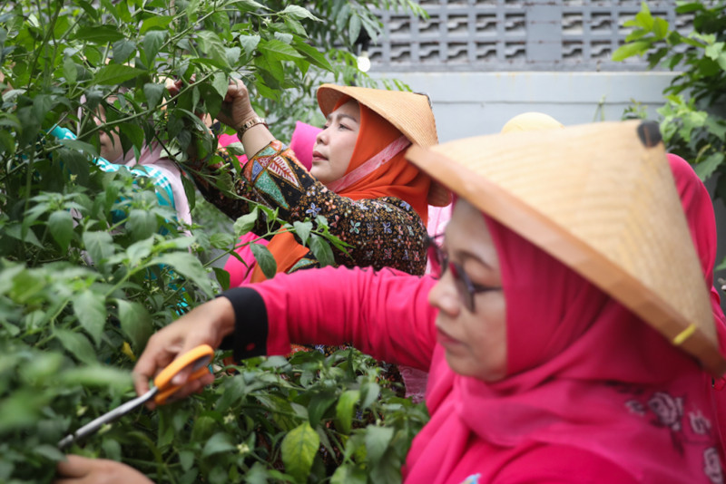 Ketua TP PKK Jaksel Panen Cabai di RPTRA Pinang Pola
