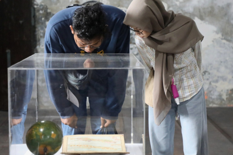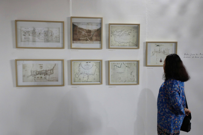 Sejumlah pengunjung menikmati pameran peta kuno yang bertajuk Kartorupa, Warisan Kartografi Nusa Jawa di Museum Kebaharian, Penjaringan, Jakarta Utara. Pameran yang berlangsung dari 16 Januari-30 April 2024 ini terselenggara melalui kerja sama dengan Tim Riset Departemen Geografi Universitas Indonesia.