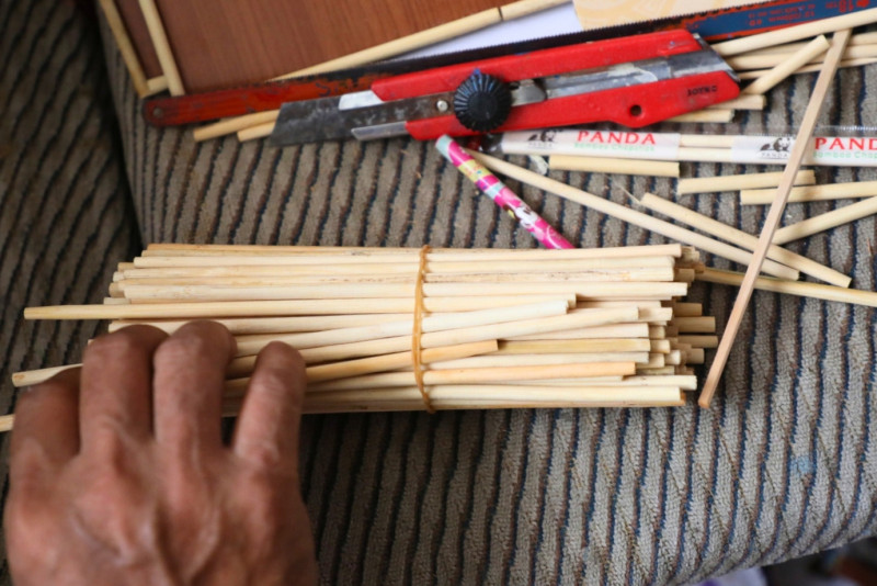 Melihat Limbah Sumpit Menjadi Kerajinan Miniatur