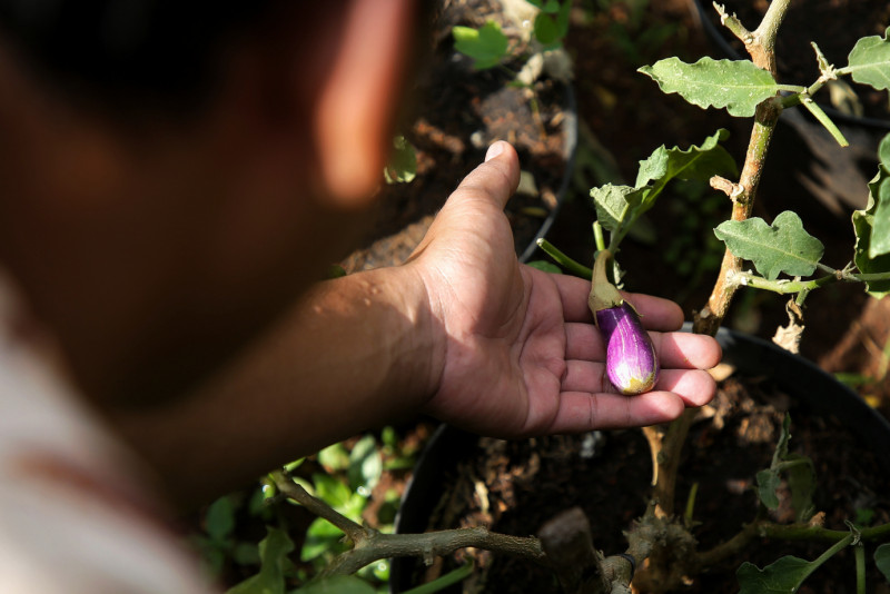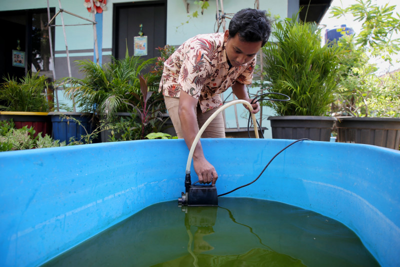 Pengelola RPTRA Melati 04 memanfaatkan lahan seluas 50 meter persegi untuk kebun tanaman produktif serta kolam gizi di RPTRA Melati 04, Bendungan Hilir, Tanah Abang, Jakarta Pusat, Kamis (25/1). Hasil panen dari kebun tanaman produktif dan kolam gizi ini biasanya didistribusikan kepada anak terduga stunting di wilayah Bendungan Hilir. #HGN2024