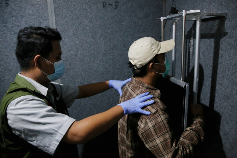 Puskesmas Kecamatan Cilandak menggelar skrining penyakit TBC dengan pemeriksaan rontgen dada dan mantoux di RPTRA Taman Gajah, Cipete Selatan, Cilandak, Jakarta Selatan, Senin (29/1). Pemeriksaan yang tidak dipungut biaya ini diutamakan bagi warga yang tinggal serumah atau kontak langsung dengan pasien positif TBC serta masyarakat umum.