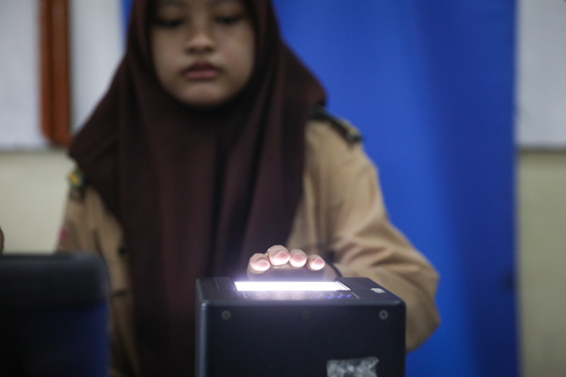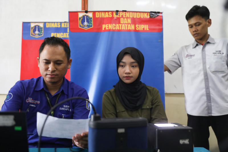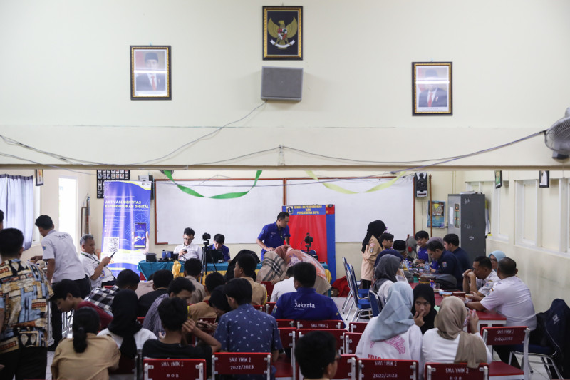 Suku Dinas Kependudukan dan Pencatatan Sipil (Sudin Dukcapil) Jakarta Selatan menggelar layanan perekaman Kartu Tanda Penduduk elektronik (KTP-el) dan aktivasi Identitas Kependudukan Digital (KD) di SMA YMIK 2, Jalan Manggarai Utara VII, Tebet, Jakarta Selatan, Rabu (31/1). Sebanyak 126 siswa mengikuti perekaman KTP-el dan aktivasi IKD dalam layanan jemput bola di SMA YMIK 2.