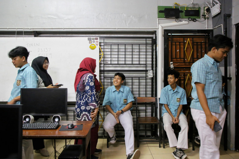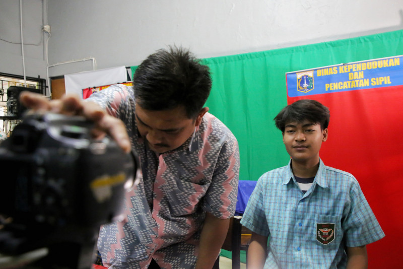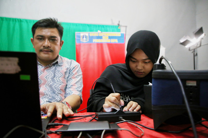 Suku Dinas Kependudukan dan Pencatatan Sipil (Sudin Dukcapil) Jakarta Selatan menggelar layanan jemput bola perekaman Kartu Tanda Penduduk elektronik (KTP-el) dan aktivasi Identitas Kependudukan Digital (KD) di SMK YPK Kesatuan, Manggarai, Tebet, Jakarta Selatan, Kamis (1/2). Sebanyak 40 siswa SMK YPK Kesatuan mengikuti perekaman KTP-el dan aktivasi IKD dalam layanan ini dari 208 siswa yang ditargetkan mengikuti kegiatan ini.