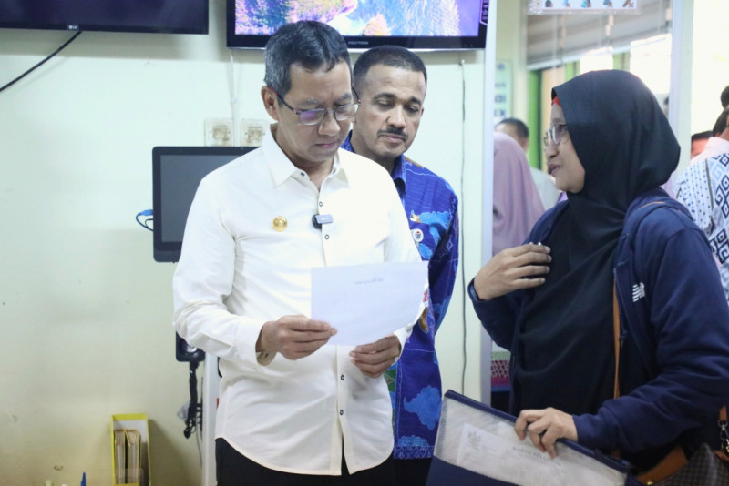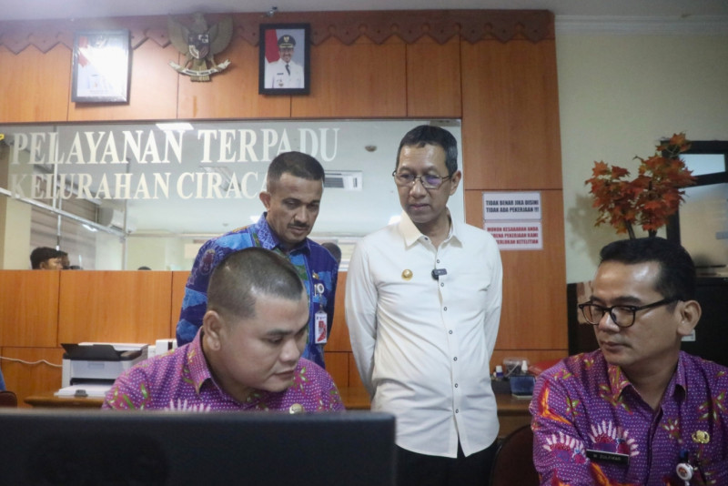 Penjabat (Pj) Gubernur DKI Jakarta, Heru Budi Hartono meninjau kegiatan Pasar Sembako Murah di Kantor Kelurahan Ciracas, Jalan Raya Ciracas, Ciracas, Jakarta Timur, Kamis (1/2). Kegiatan sembako murah ini merupakan lokasi ke -10 yang telah diselenggarakan Pemprov DKI Jakarta.