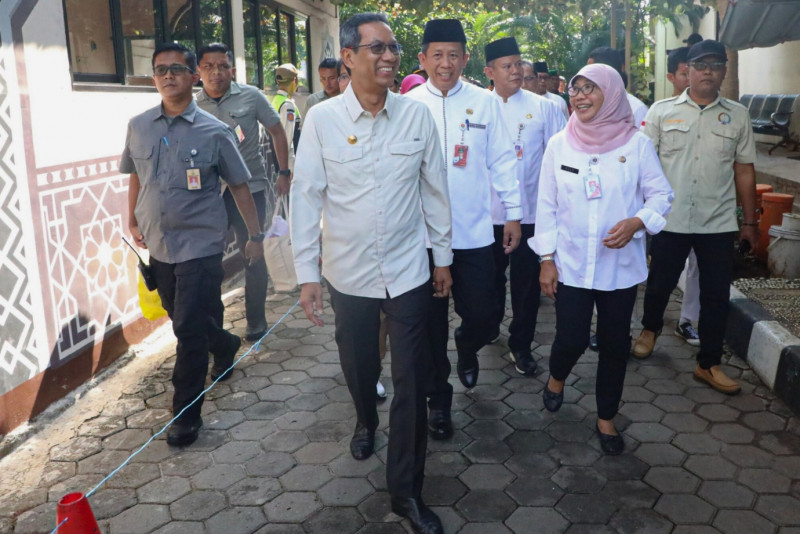 Penjabat (Pj) Gubernur Provinsi DKI Jakarta Heru Budi Hartono meninjau Pasar Sembako Murah di Kantor Kelurahan Koja, Jalan Inspeksi Kali Sunter, Koja, Jakarta Utara, Jumat (2/1). Kegiatan pasar sembako murah ini menyiapkan 700 paket sinergi antara Pemprov DKI, Terminal Peti Kemas Koja dan PT Food Station.