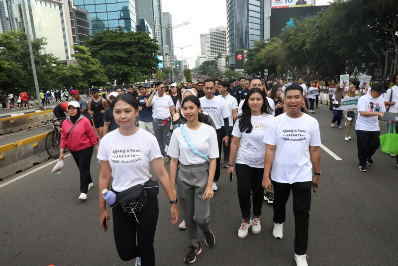 Dinas Pariwisata dan Ekonomi Kreatif (Parekraf) DKI Jakarta mengadakan kegiatan Jalan Santai Bersama Abang None (Abnon) di Hari Bebas Kendaraan Bermotor (HBKB) Sudirman-Thamrin, Minggu (4/2). Kegiatan ini diikuti 40 peserta terdiri dari Abang dan None Provinsi DKI Jakarta yang masih bertugas maupun sudah berstatus alumni.