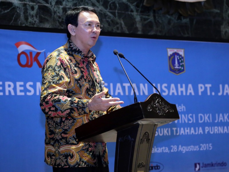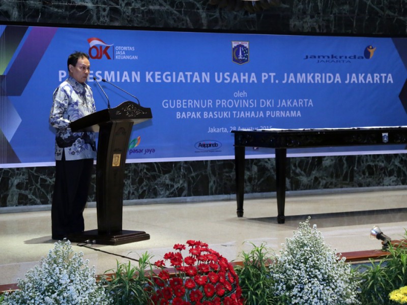 Gubernur DKI Jakarta, Basuki Tjahaja Purnama meresmikan kegiatan usaha PT. Penjamin Kredit Daerah (Jamkrida) Jakarta, di Balai Kota DKI Jakarta, Jumat (28/8/2015). PT Jamkrida Jakarta akan membantu kemudahan pinjaman modal para pelaku usaha mikro, kecil, dan menengah (UMKM) di Jakarta dari perbankan. (Foto : Yopie/Beritajakarta.com)