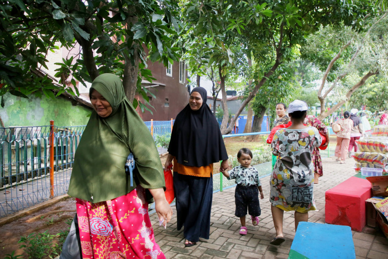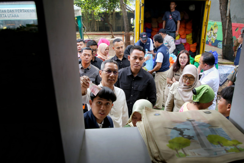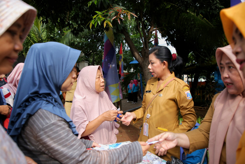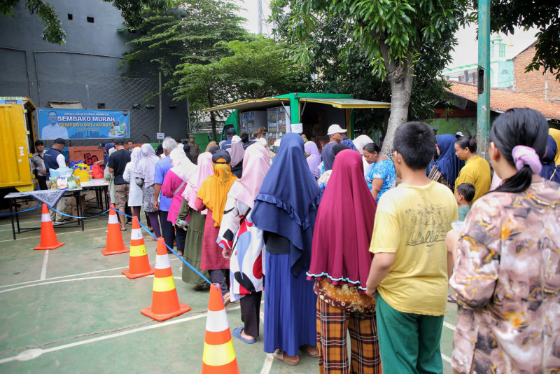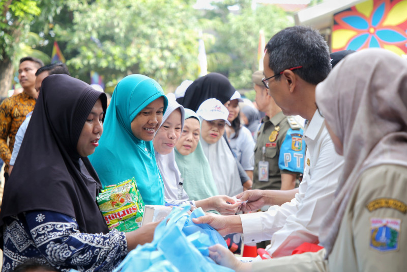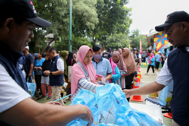 Warga Antusias Belanja Paket Sembako Murah di RPTRA H. Oyar