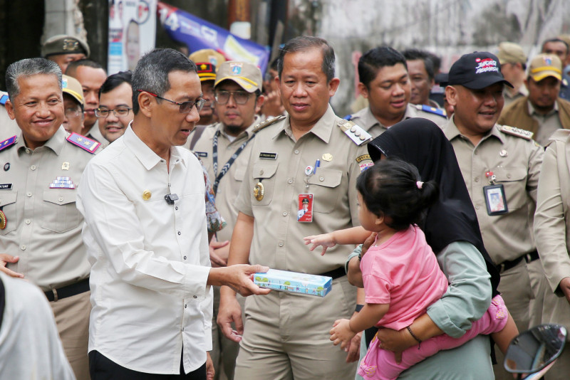 Penjabat (Pj) Gubernur DKI Jakarta, Heru Budi Hartono menyerahkan 21 sertifikat tanah dengan status Sertifikat Hak Milik (SHM) kepada warga di RW 003/03, Pegangsaan Dua, Kelapa Gading, Jakarta Utara, Senin (5/2). Penerbitan sertifikat tanah berstatus SHM ini diharapkan dapat memberikan kepastian hukum dan ketenangan, serta menghindari permasalahan pertanahan, baik sengketa, konflik dan perkara.