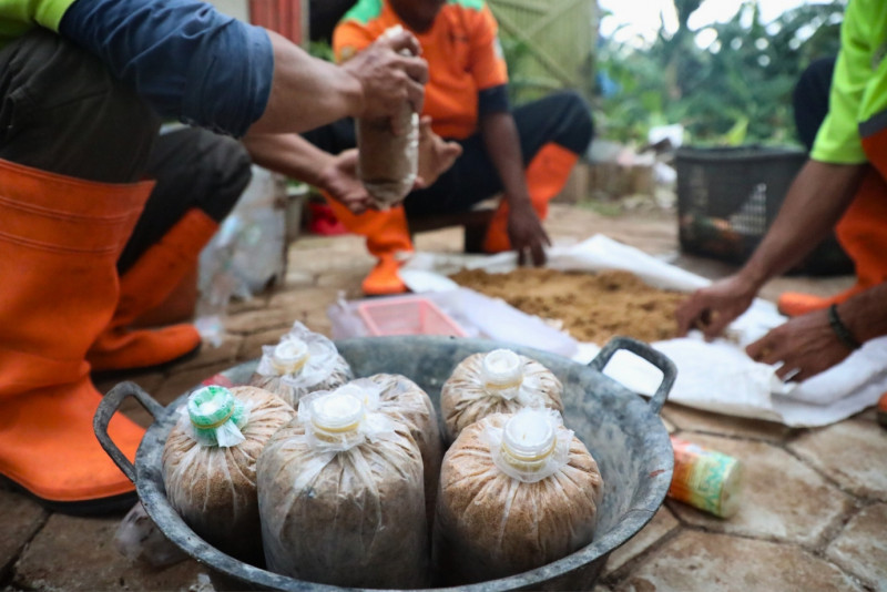 Petugas UPS Badan Air Kecamatan Cakung Budidayakan Jamur