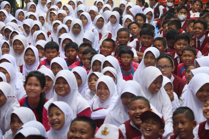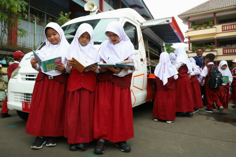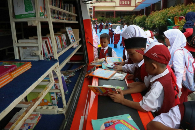 Suku Dinas Perpustakaan dan Kearsipan (Sudin Pusip) Jakarta Timur menggelar kegiatan wisata literasi di SDN Penggilingan 01 Jalan Raya Penggilingan, Cakung, Jakarta Timur, Selasa (6/2). Kegiatan ini merupakan upaya meningkatkan kegemaran minat baca di kalangan siswa khususnya di wilayah Jakarta Timur.