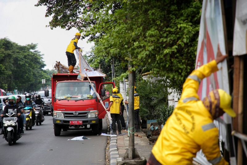 Petugas Gabungan Tertibkan APK di Jalan Raya Bogor
