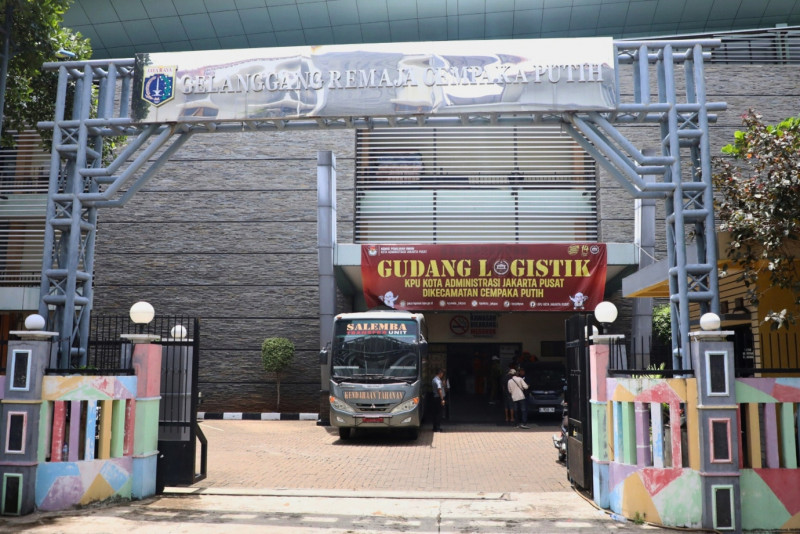 Komisi Pemilihan Umum (KPU) Jakarta Pusat mendistribusikan 1.168 logistik pemilu dari gudang logistik KPU di Gelanggang Olahraga (GOR) Cempaka Putih, Selasa (13/2). Logistik pemilu ini akan dibagikan ke 292 Tempat Pemungutan Suara (TPS) yang berada di wilayah Kecamatan Cempaka Putih.