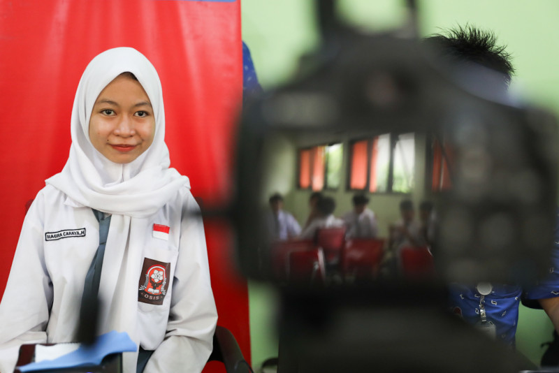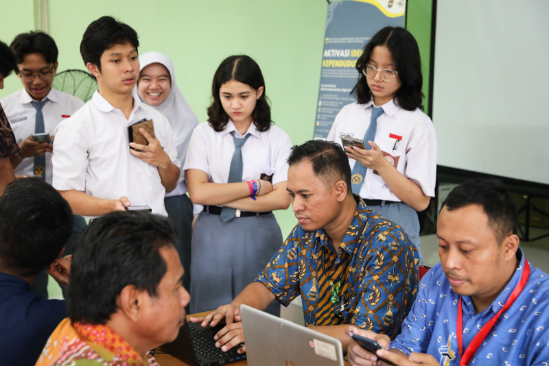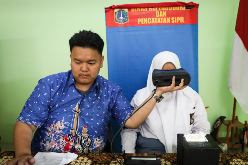 Suku Dinas Kependudukan dan Catatan Sipil (Sudin Dukcapil) Jakarta Selatan melakukan pelayanan jemput bola perekaman KTP-el dan aktivasi Identitas Kependudukan Digital (IKD) di SMAN 55 Jakarta, Pancoran, Jakarta Selatan, Kamis (15/2). Sebanyak 85 siswa SMAN 55 melakukan perekaman KTP-el dan aktivasi IKD pada layanan jemput bola yang digelar selama satu hari tersebut.