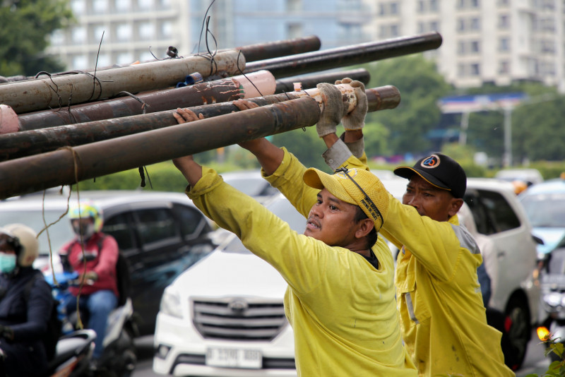 Dinas Bina Marga Cabut Tiang Kabel di Jalan MT Haryono