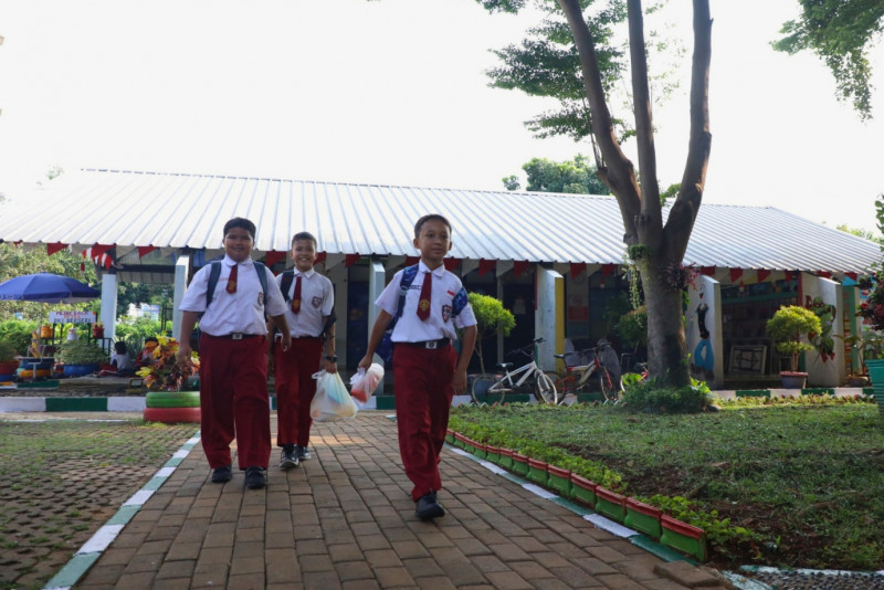 Sejumlah Anak Sekolah Memanfaatkan RPTRA Jadi Tempat Edukasi