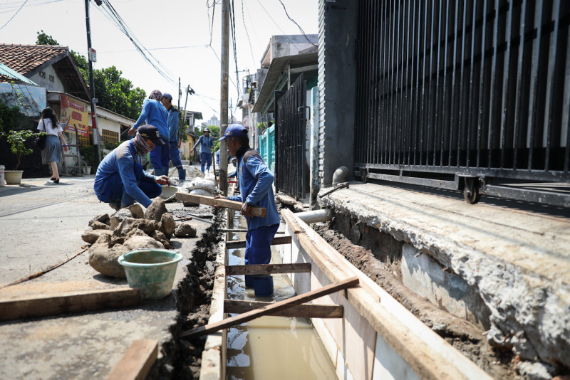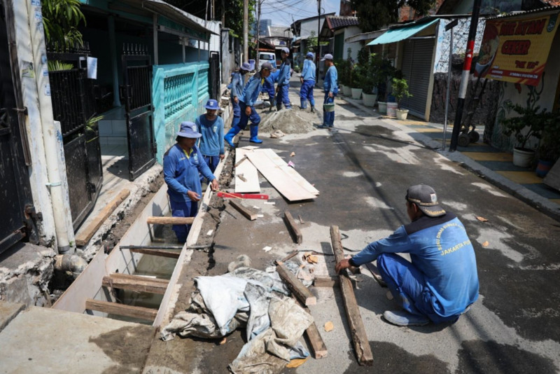Sudin SDA Jakpus Buat Saluran di Jalan Taruna V Kemayoran