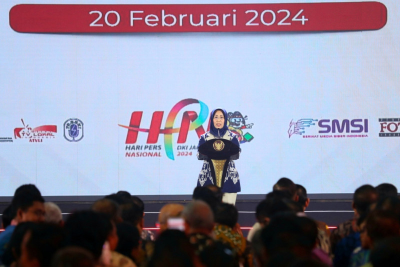 Penjabat Gubernur (Pj) DKI Jakarta, Heru Budi Hartono mendampingi Presiden RI, Joko Widodo menghadiri puncak acara peringatan Hari Pers Nasional 2024 di Ecovention Ancol, Jalan Lodan Timur, Ancol, Pademangan, Jakarta Utara, Selasa (20/2). Puncak Hari Pers Nasional 2024 ini mengangkat tema Mengawal Transisi Kepemimpinan Nasional dan Merawat Keutuhan Bangsa.