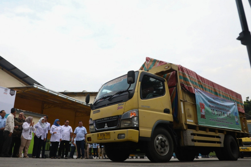 Penjabat (Pj) Gubernur DKI Jakarta, Heru Budi Hartono melepas pengiriman 15 ribu ton beras secara bertahap di PT. Food Station Tjipinang Jaya, Jalan Pisangan Lama Selatan, Pisangan Timur, Pulo Gadung, Jakarta Timur, Rabu (21/2). Hari ini 300 ton beras didistribusikan melalui 20 truk dan sisanya akan dikirimkan secara bertahap hingga menjelang Idulfitri 1445 Hijriah.
