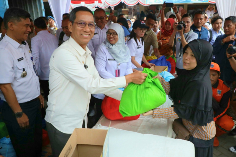 Penjabat (Pj) Gubernur DKI Jakarta, Heru Budi Hartono kembali meninjau kegiatan sembako murah di dua lokasi yakni di halaman Kantor Kecamatan Tanah Abang, Jakarta Pusat dan halaman Kantor Kecamatan Palmerah, Jakarta Barat, Rabu (21/2). Dalam kegiatan ini, sebanyak 3.000 paket sembako didistribusikan kepada warga di dua kecamatan tersebut.