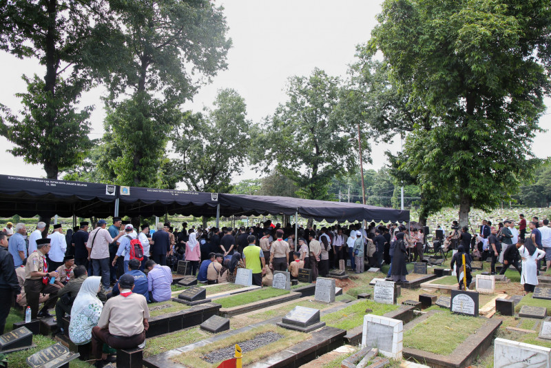 Prosesi pemakaman mantan Sekda DKI Jakarta Periode 2010-2013, Fadjar Panjaitan di Taman Pemakaman Umum (TPU) Tanah Kusir Blok Aa 1 llI Blad 38, Kebayoran Lama, Jakarta Selatan, Kamis (22/2). Pemakaman berlangsung khitmad diiringi dengan penghormatan khas pramuka mengingat almarhum Fadjar Panjaitan merupakan Ketua Kwarda Pramuka DKI Jakarta masa bakti 2019-2024.