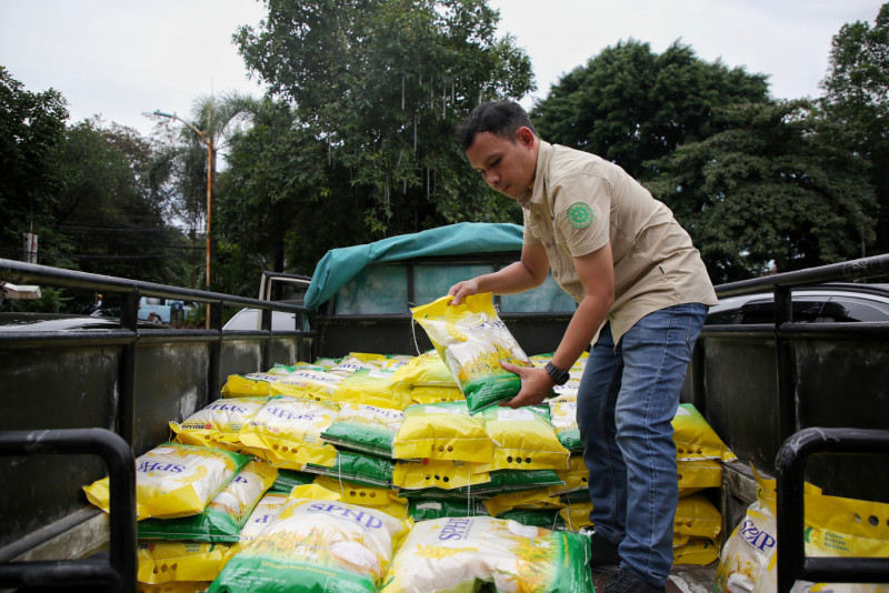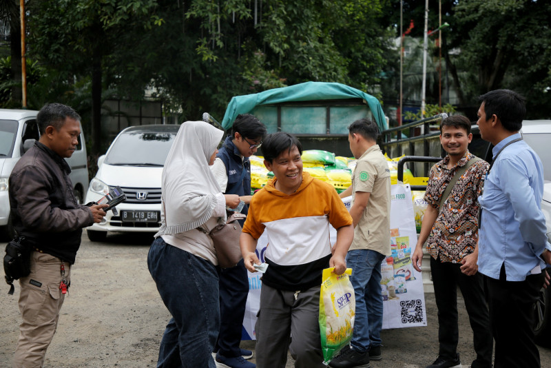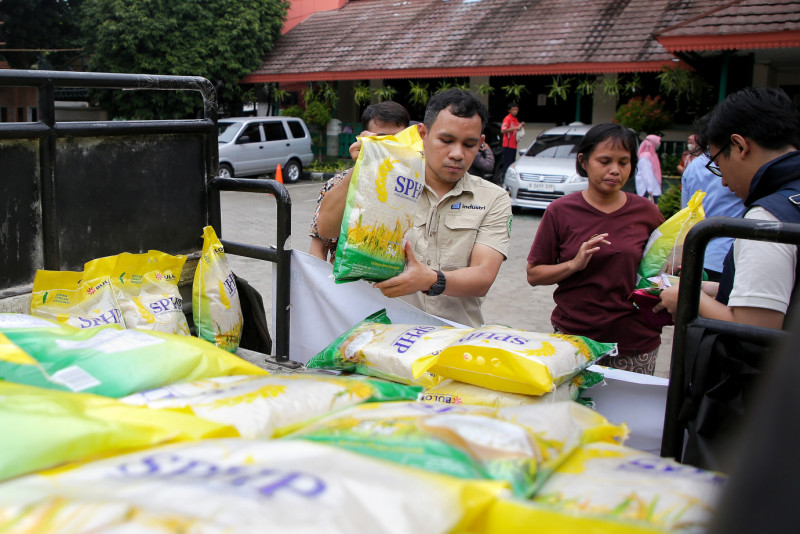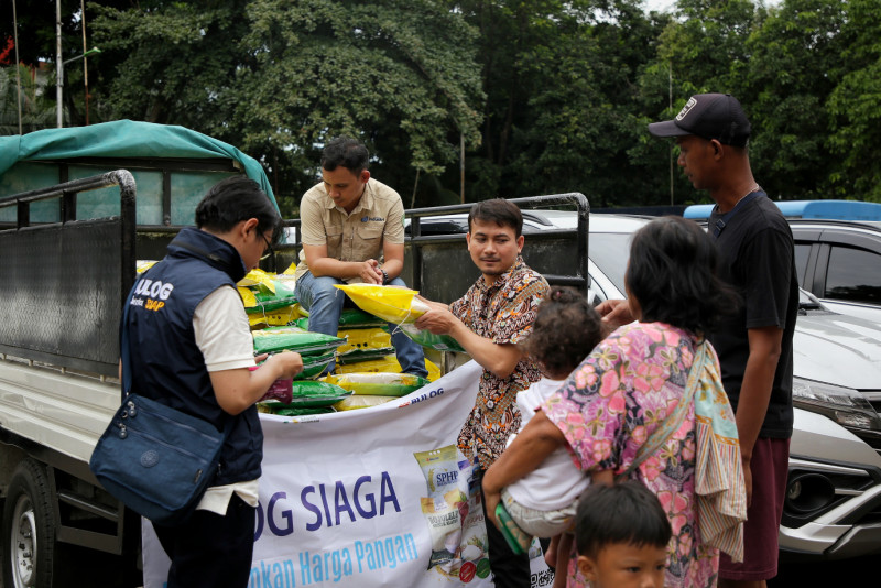 Program Badan Usaha Logistik Aksi Amankan Harga (Bulog SIAGA) digelar di halaman Kantor Kecamatan Pasar Minggu, Jakarta Selatan, Jumat (23/2). Sebanyak 300 beras Stabilisasi Pasokan dan Harga Pangan (SPHP) yang digelontorkan dalam program bulog siaga dengan harga Rp.53.000 per lima kilogram ini dinilai cukup efektif, mengingat harga beras di pasar rata-rata sudah menembus angka 70-100 ribu per lima kilogramnya.