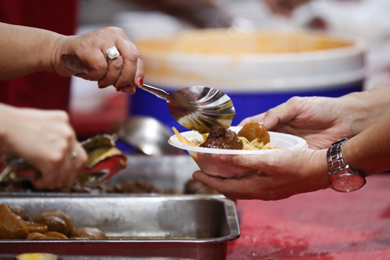 Warga keturunan Tionghoa merayakan Cap Go Meh di Wihara Amurva Bhumi, Karet Semanggi, Setiabudi, Jakarta Selatan, Jumat (23/2). Perayaan Cap Go Meh yang merupakan penutup rangkaian Tahun Baru Imlek itu diisi dengan hiburan organ tunggal serta sajian makanan khas seperti lontong, kue pancong dan martabak.
