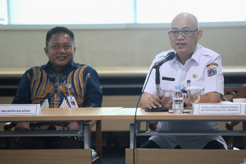 Pemerintah Provinsi (Pemprov) DKI Jakarta menerima kunjungan dari Pemerintah Kota Salatiga di Ruang Bimtek 1, Gedung Grha Ali Sadikin, Balai Kota DKI Jakarta, Rabu (28/2). Kunjungan ini dalam rangka Pembinaan dan Pengembangan Kemitraan Media (Press Tour) Tahun 2024 ke Pemerintah Provinsi DKI Jakarta.