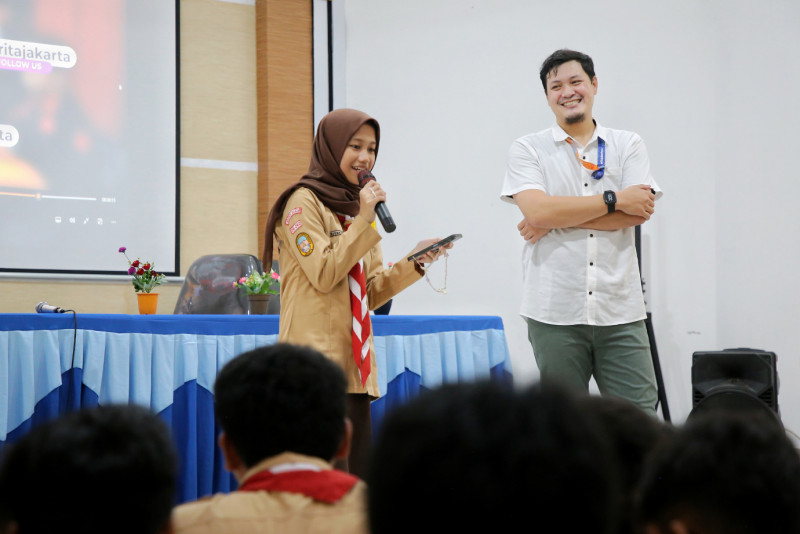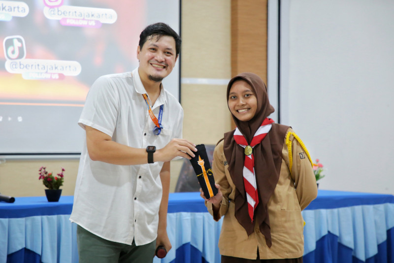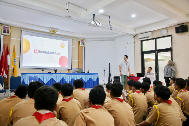 Tim Beritajakarta bersama Jakarta Smart City (JSC) menggelar sosialisasi di SMK Negeri 20 Jakarta, Jalan Melati, Kelurahan Cilandak Barat, Cilandak, Jakarta Selatan, Rabu (28/2). Pada sosialisasi ini tim beritajakarta memperkenalkan tiga layanan informasi yang bisa diakses masyarakat melalui website berita beritajakarta.id, kanal digital beritajakarta.tv dan akun media sosial beritajakarta.