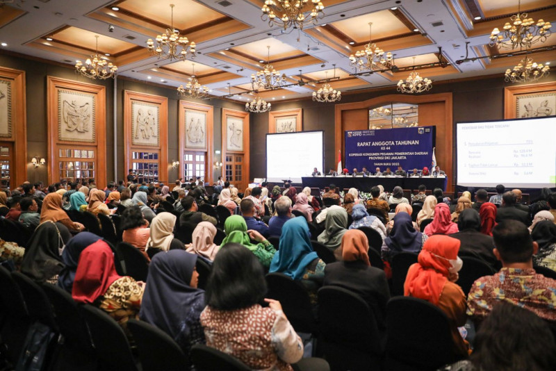 Koperasi Konsumen Pegawai Pemerintah Daerah (KPPD) Provinsi DKI Jakarta melaksanakan Rapat Anggota Tahunan (RAT) ke-44 Tahun Buku 2023 di Hotel Aryaduta Menteng, Gambir, Jakarta Pusat, Kamis (29/2). Pelaksanaan RAT KPPD ke-44 dibuka oleh Asisten Perekonomian dan Keuangan (Asperkeu) Sekda Provinsi DKI Jakarta, Sri Haryati selaku dewan penasihat KPPD DKI Jakarta.