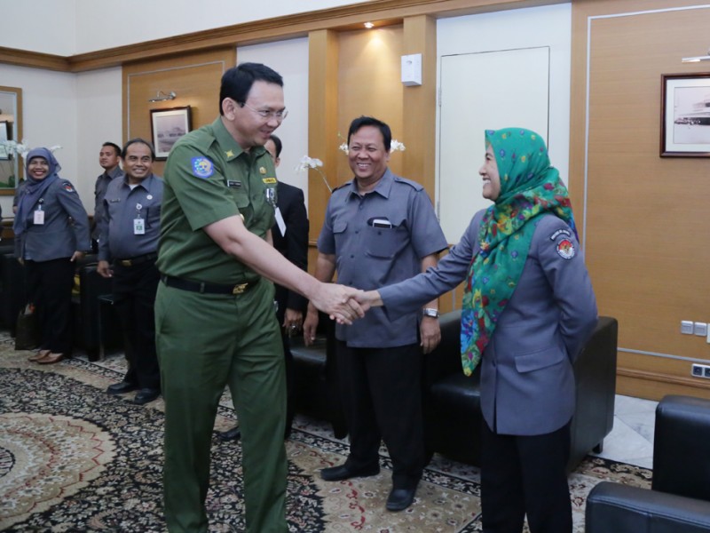 Ketua Badan Pengawas Pemilihan Umum (Bawaslu) Provinsi DKI Jakarta, Imah Susanti menemui Gubernur DKI Jakarta, Basuki Tjahaja Purnama di Balai Kota DKI Jakarta, Senin (31/8/2015). Dalam pertemuan tersebut, Imah menyampaikan perihal laporan sosialisasi tugas pengawasan partisipatif menyambut Pemilihan Kepala Daerah (Pilkada) DKI Jakarta Tahun 2017. (Foto: Yopie/beritajakarta.com)
