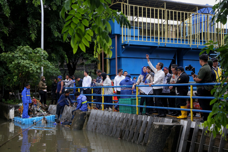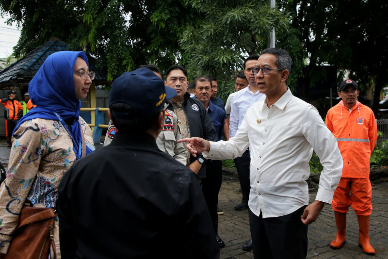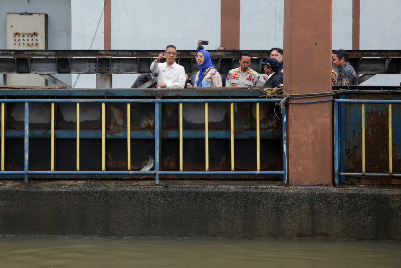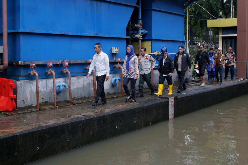 Penjabat (Pj) Gubernur DKI Jakarta, Heru Budi Hartono meninjau Rumah Pompa Ancol, Tanjung Priok, Jakarta Utara, Kamis (29/2). Kunjungan ini dilakukan untuk memastikan rumah pompa berjalan dengan baik, mengingat Jakarta dan sekitarnya diguyur hujan sejak dini hari.