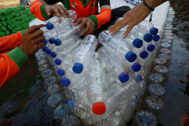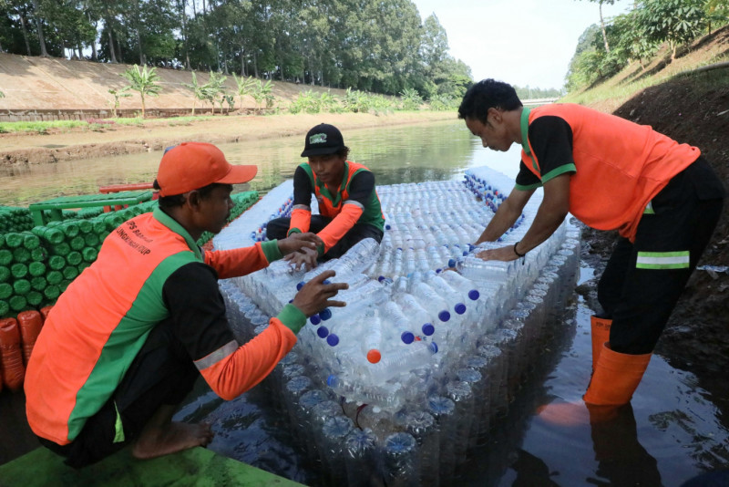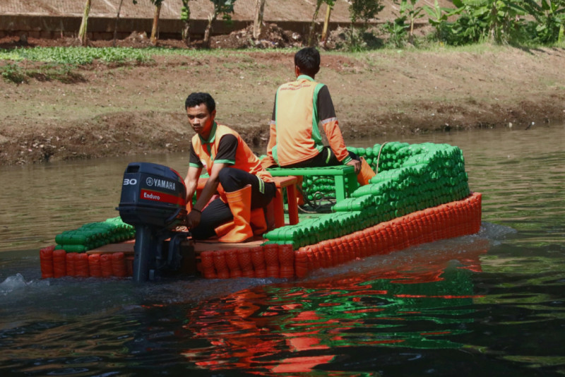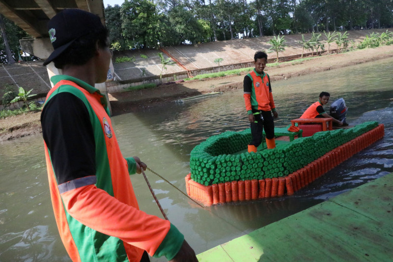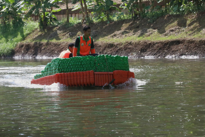 Botol Bekas Diubah Jadi Perahu Oleh Petugas UPS Badan Air Duren Sawit